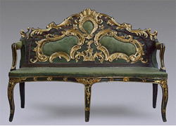 Барокко сменяет утонченный рококо, в мебели которого нет никакого намека на правильность линий и скуку. Конструкция выглядит литой без острых углов. Цветовое решение — от розового и голубого до бежевого и оливкового. В качестве декора — бронзовые накладки и роспись.