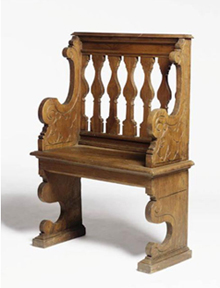 Прочная мебель в романском стиле — тяжелая и громоздкая. Для ее изготовления применяется только натуральная древесина. Деревянные части крепятся с помощью кованых деталей, они же — но более изысканные — служат декором. Романский стиль — это устойчивые табуреты на трех ножках, стулья с высокой спинкой и массивные столешницы, украшаемые резьбой.