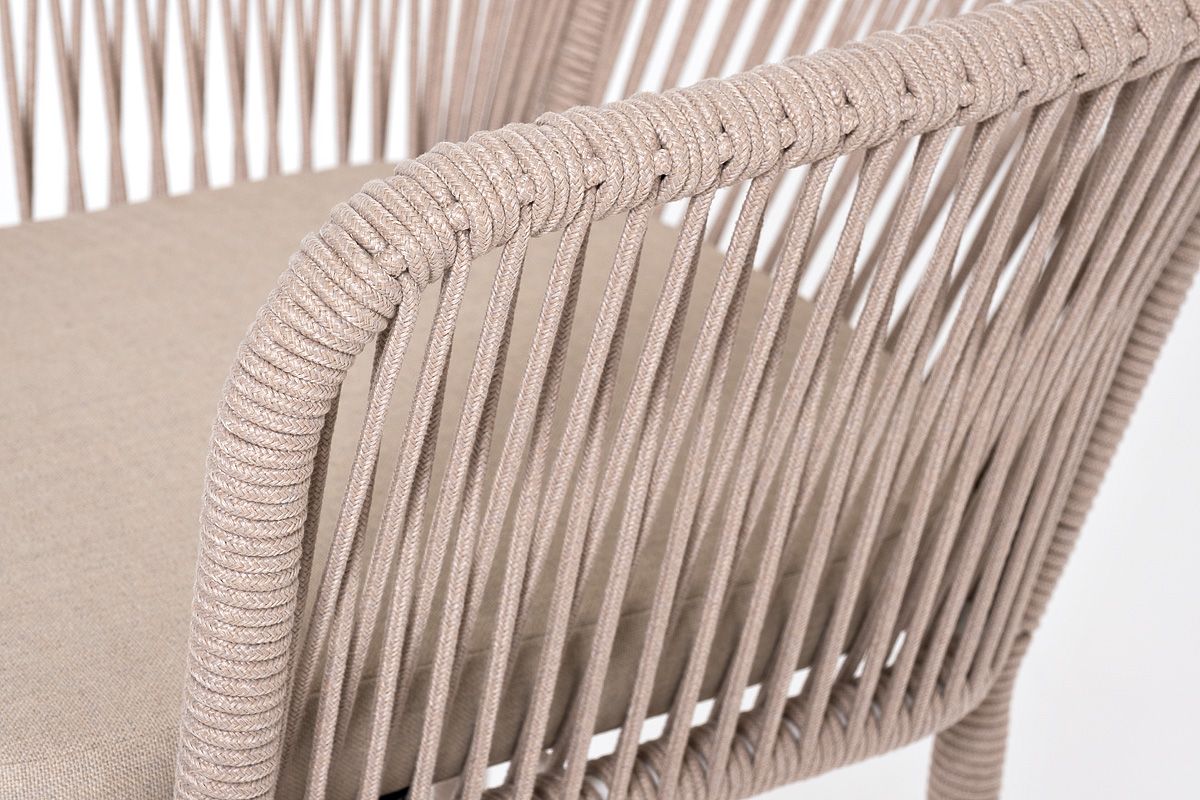 - Барный стул "Марсель" представлен в стальном каркасе белого (RAL9016) цвета, оплетен вручную эластичными синтетическими лентами из высокопрочных полиэфирных волокон, бежевого оттенка.