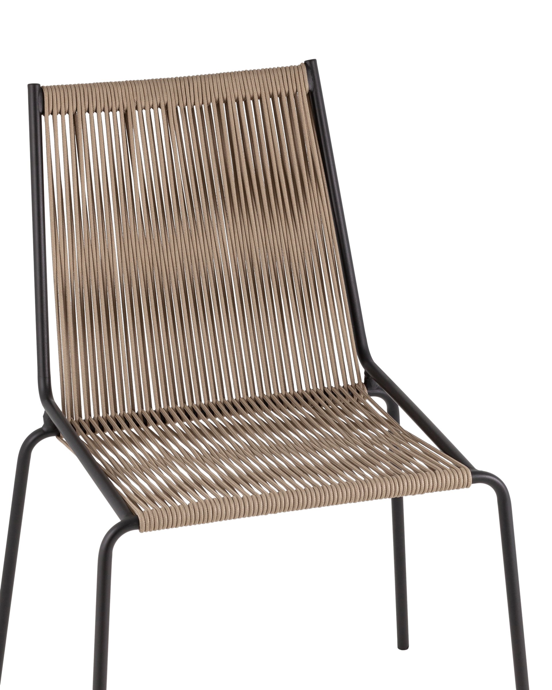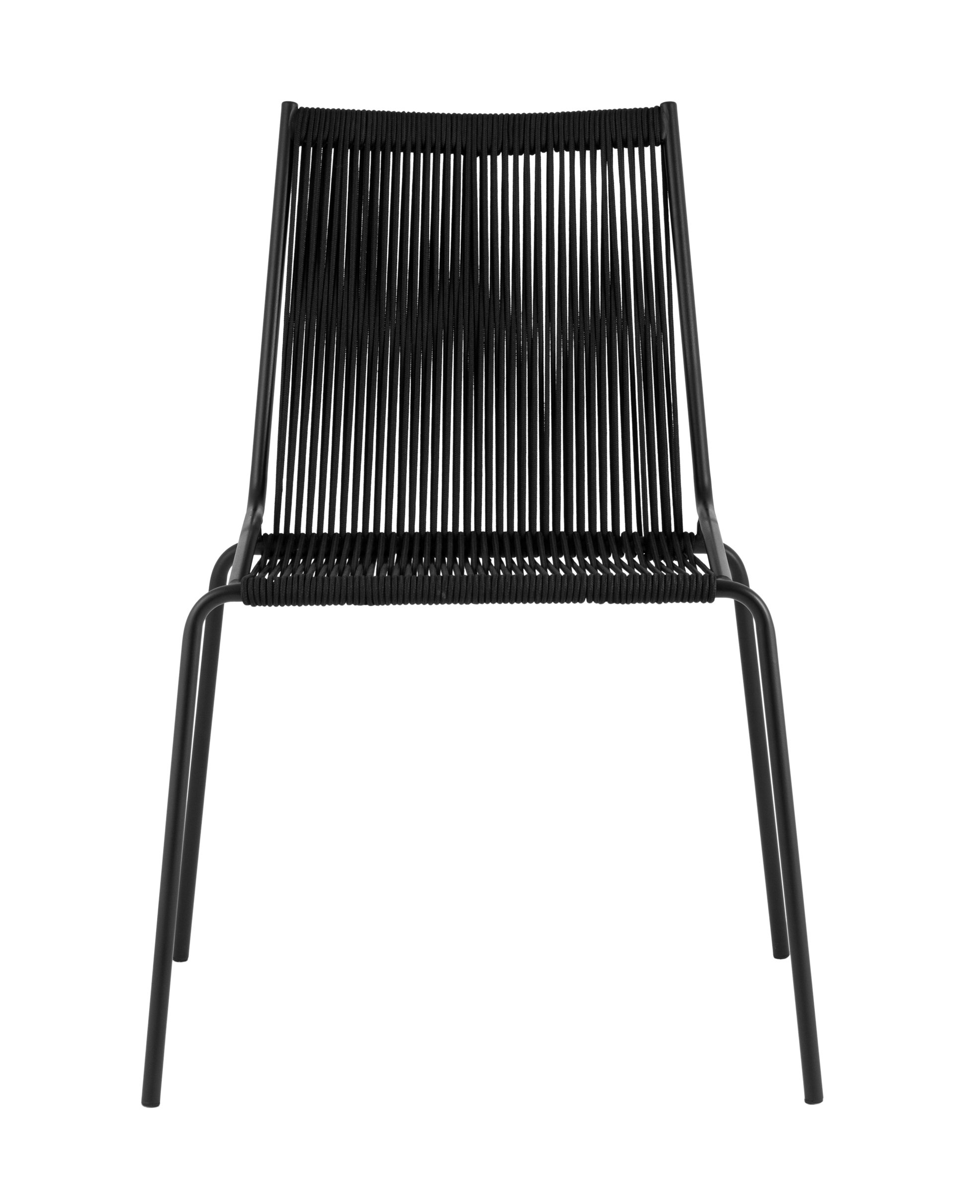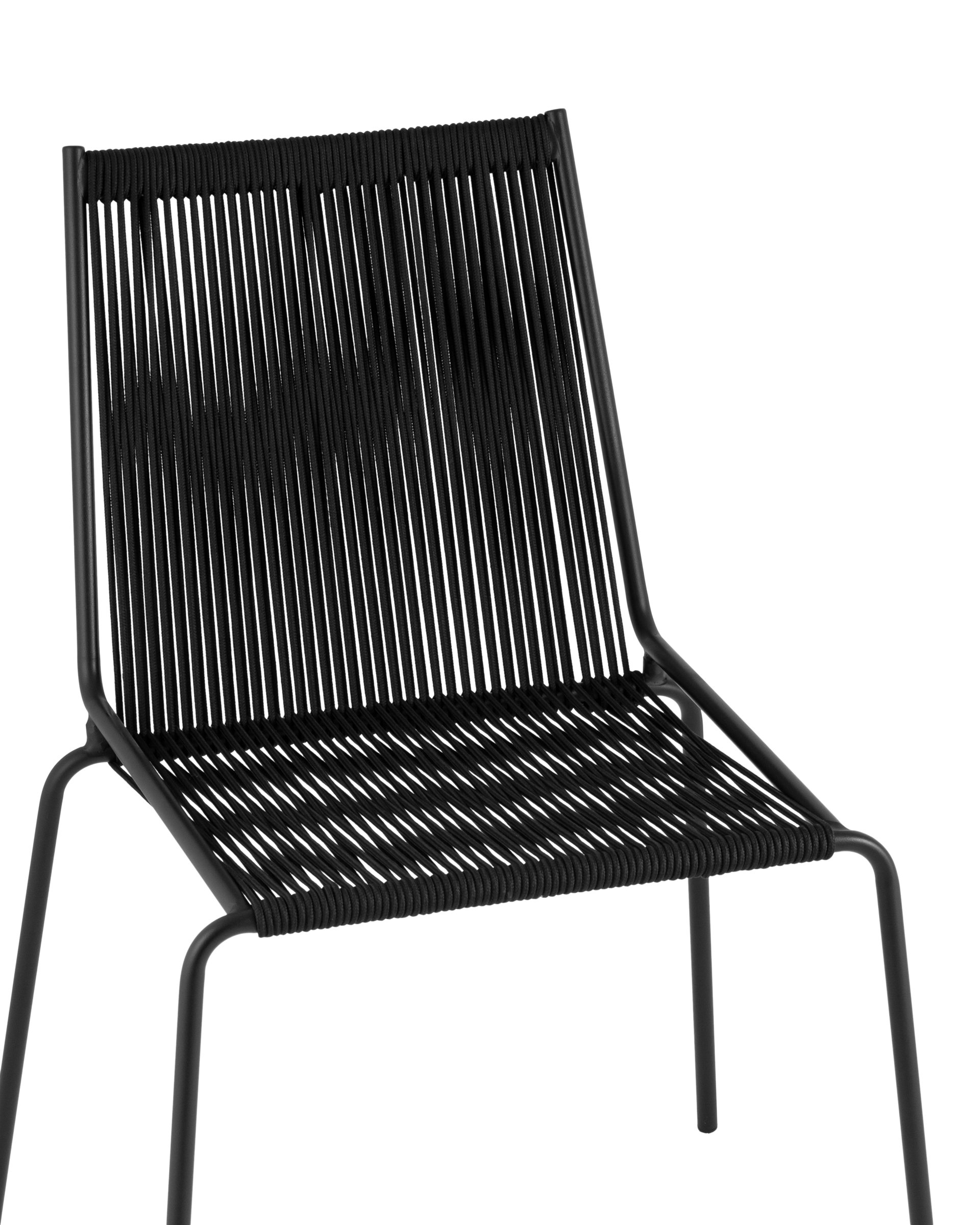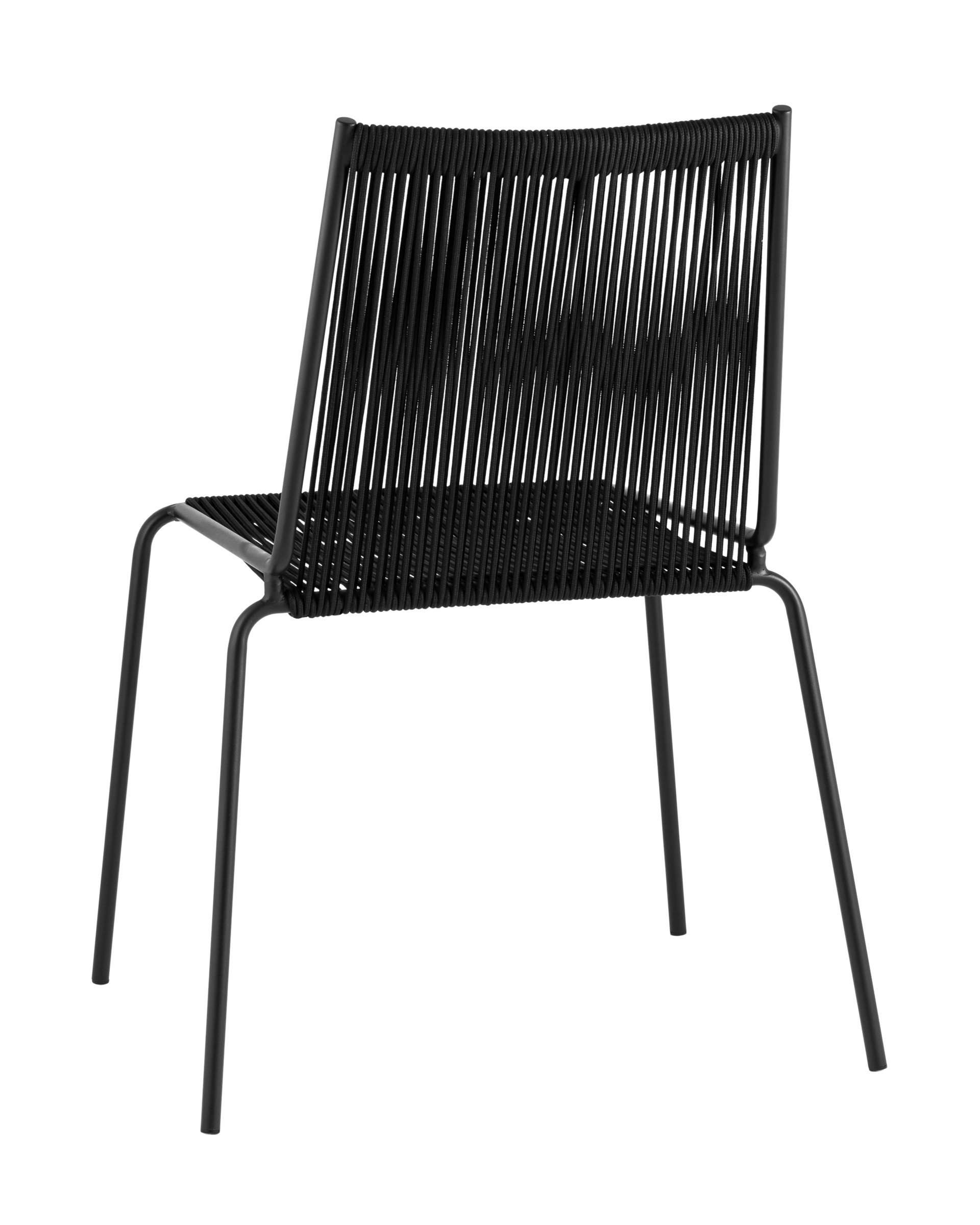 - Металлический каркас и ножки имеют черное покрытие, устойчивое к коррозии, что делает стул подходящим для использования на улице и в помещениях.