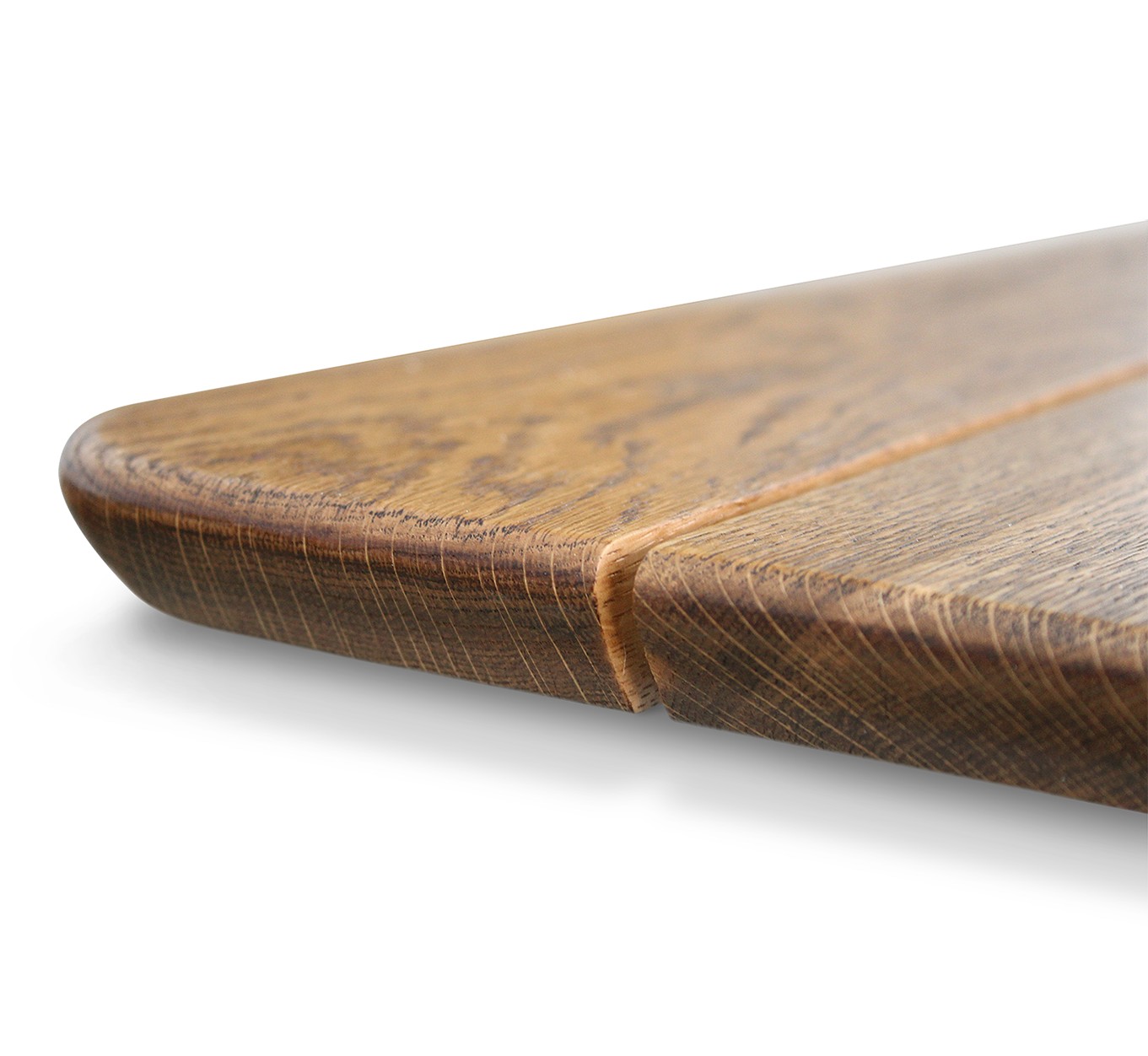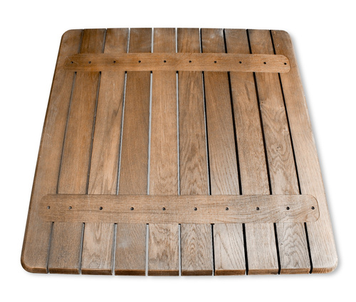 - Столешница выполнена целиком из натурального дуба. Брашированные, обработанные бруски расположены через промежутки между собой.
