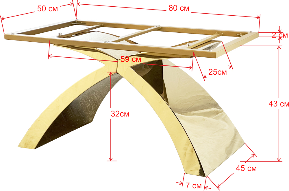 Материал подстолья – полированная нержавеющая сталь золотого цвета (нитрит титана).