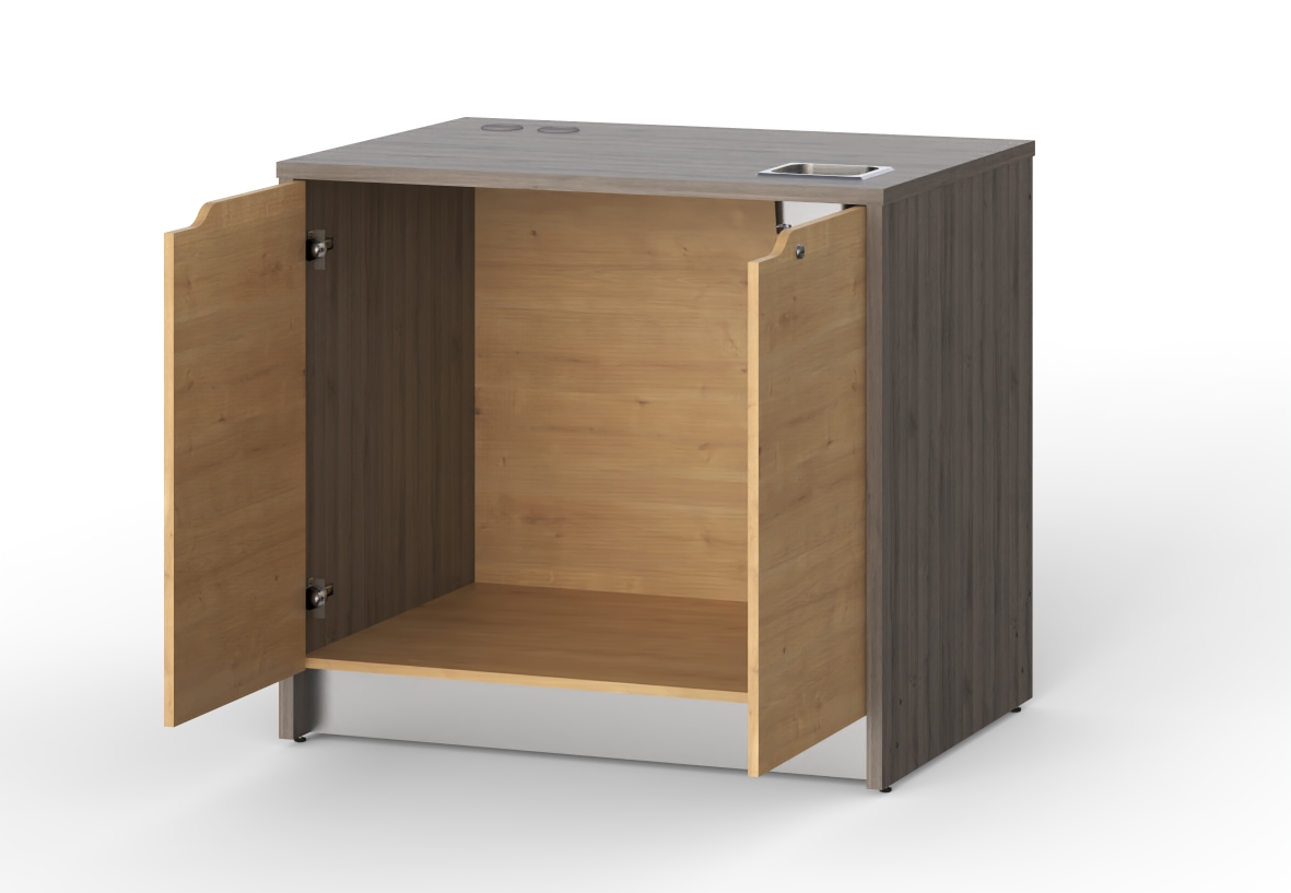 - Места для размещения 2 стандартных бутылей 19 л для подачи воды и слива, мусорного ведра, товарного запаса