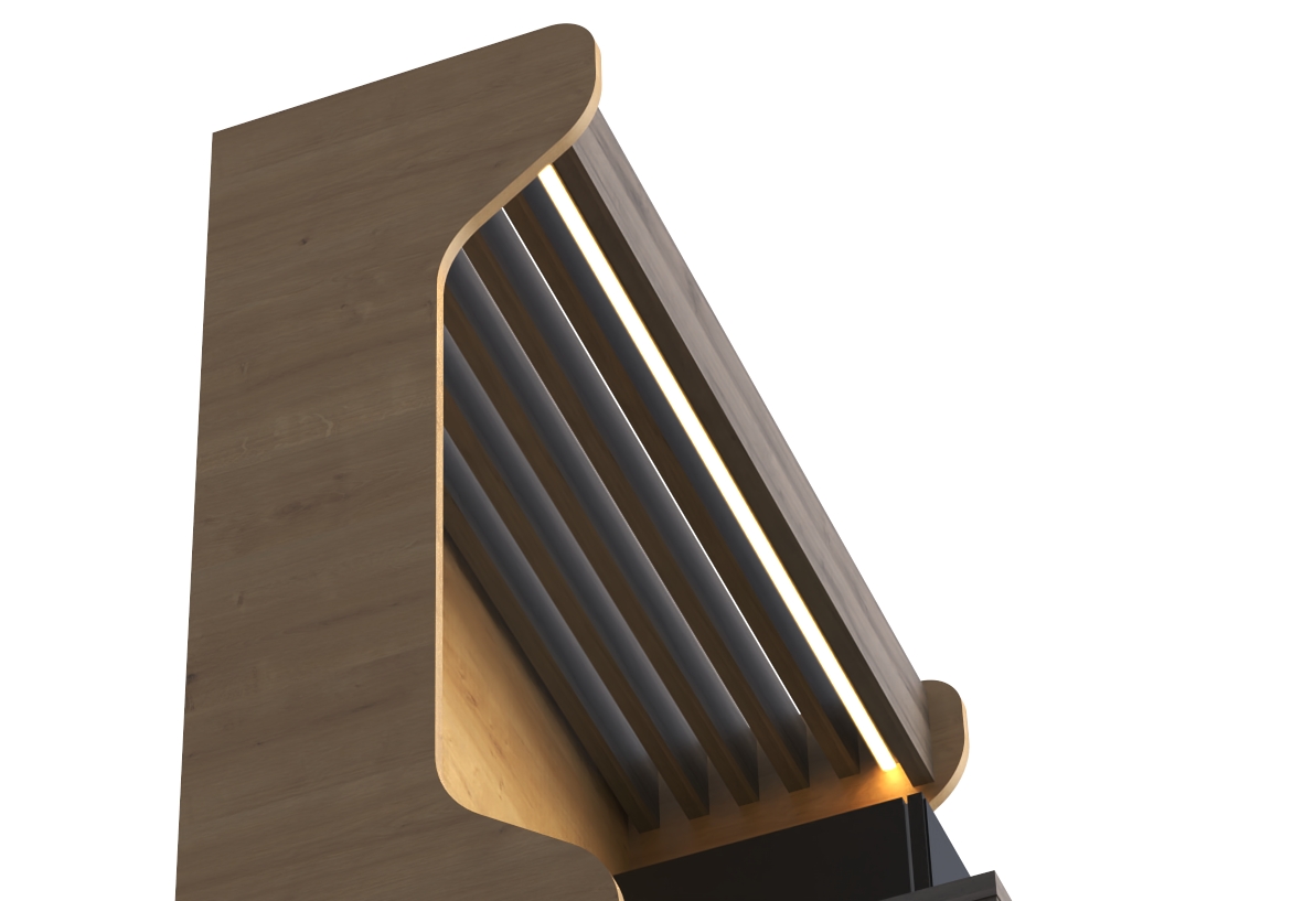 - Отверстия в столешнице с декоративными заглушками для подвода/вывода воды к кофемашине и вывода проводов для подключения техники к сети