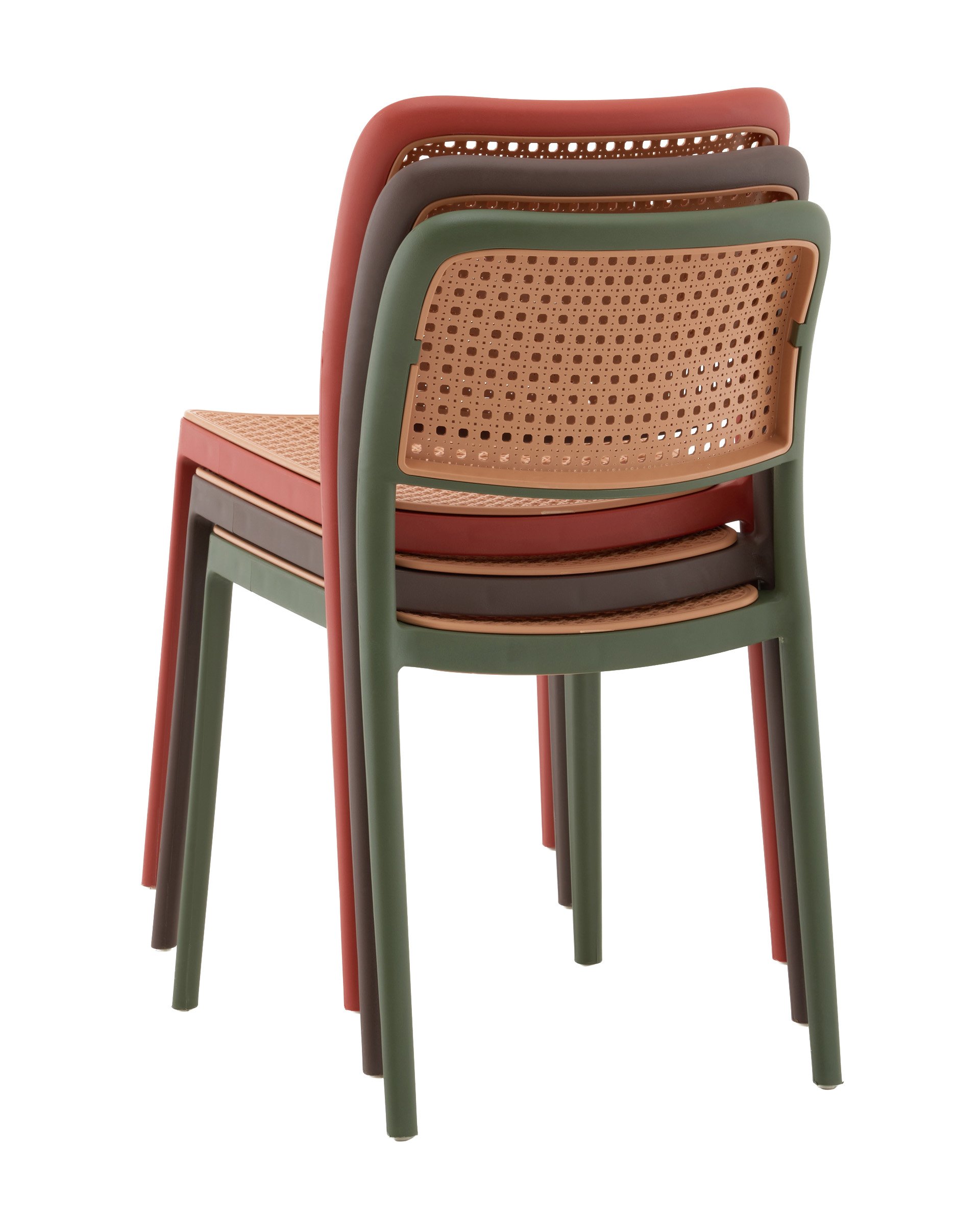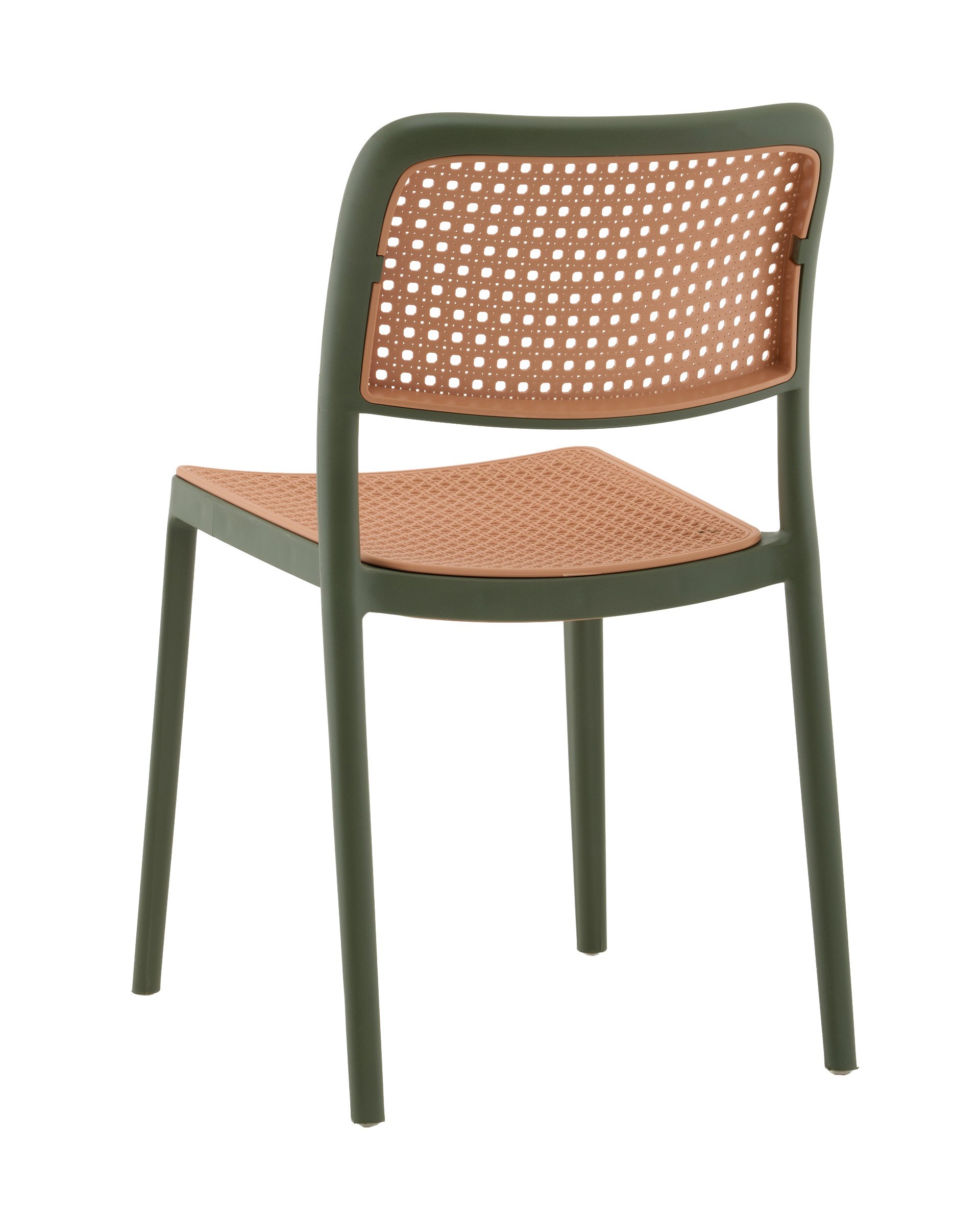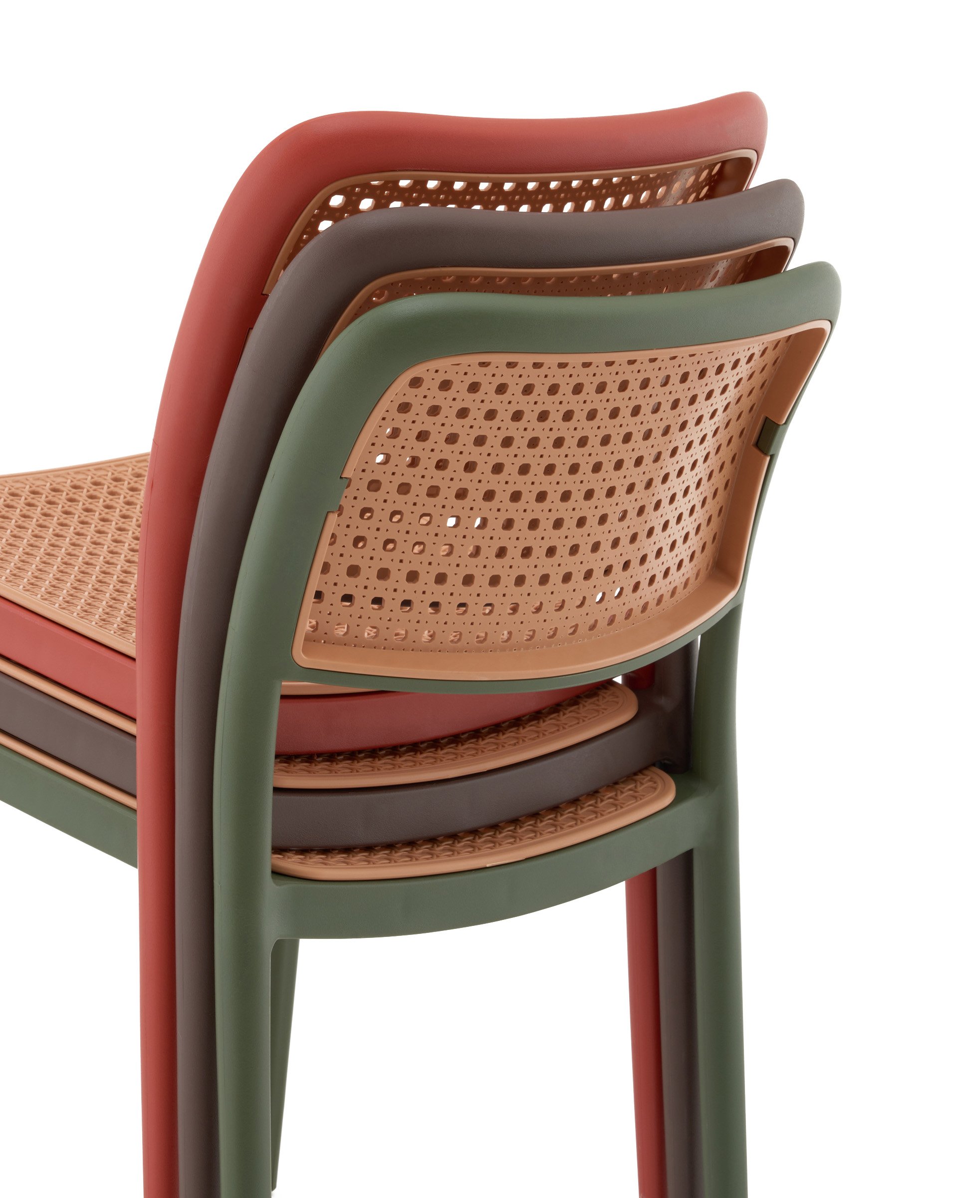 - Стул изготовлен из качественного пластика, который устойчив к влаге, солнечному свету и механическим повреждениям.
